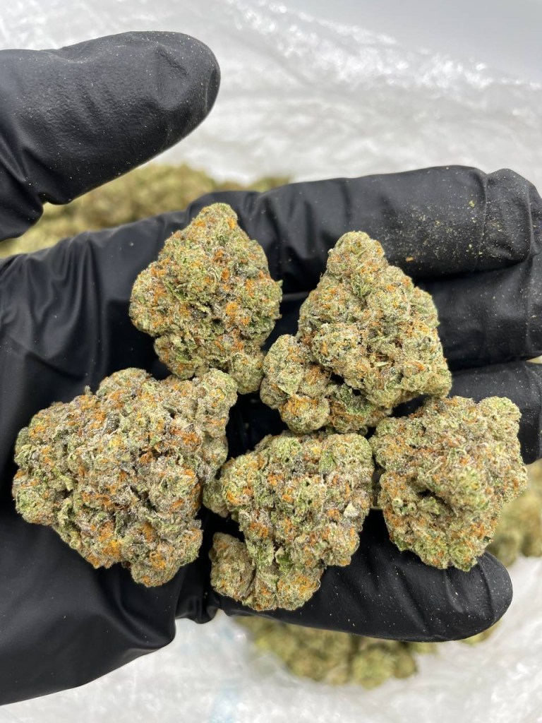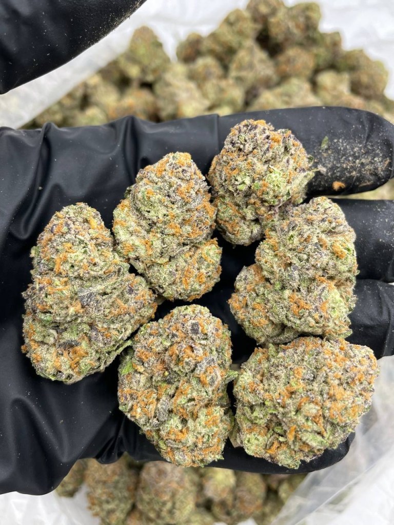 Dense frosty nugs with a nice clean trim job and light amounts of purple. Cured really nicely with a unique nose that smells like a biscotti crossed with grape pie 🔥